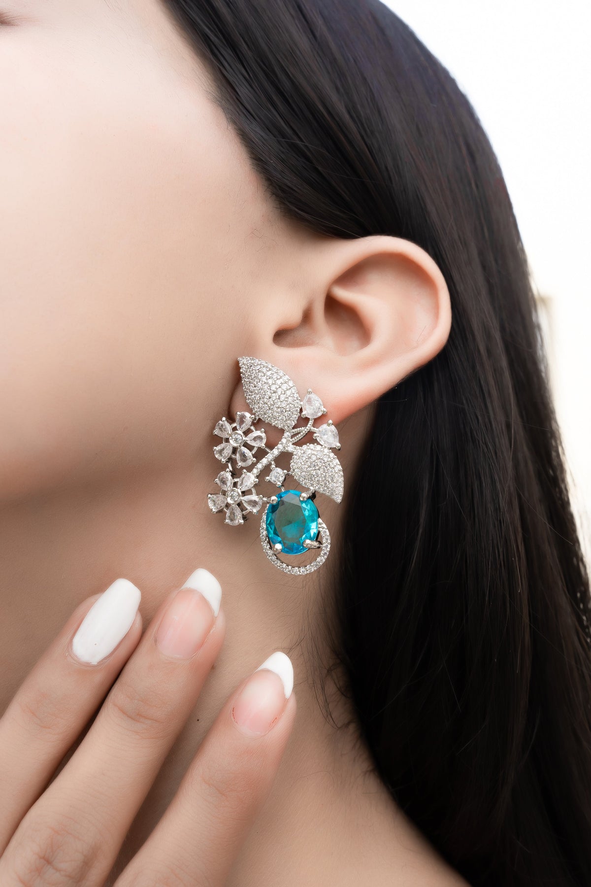 Nature meets nobility in these floral-inspired earrings. With sparkling vines of pavé leaves and crystal blossoms leading to a rich gemstone drop, they bring a graceful flourish to every gaze and gesture.