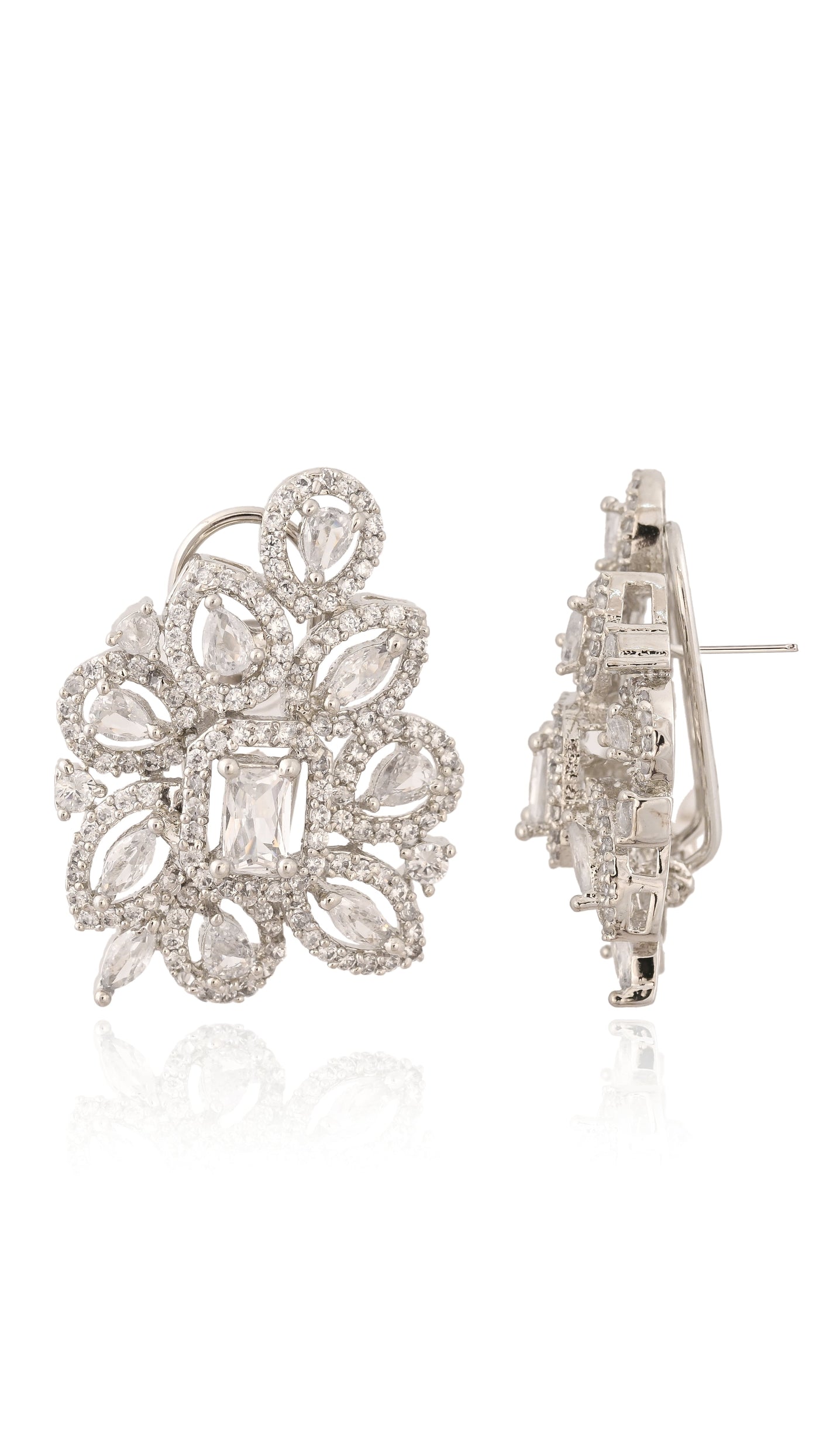Ornate and enchanting, these earrings capture the timeless elegance of old-world charm. With intricate loops of pear and marquise-cut stones around a radiant emerald-cut center, they bring a ballroom-worthy glow to any look.