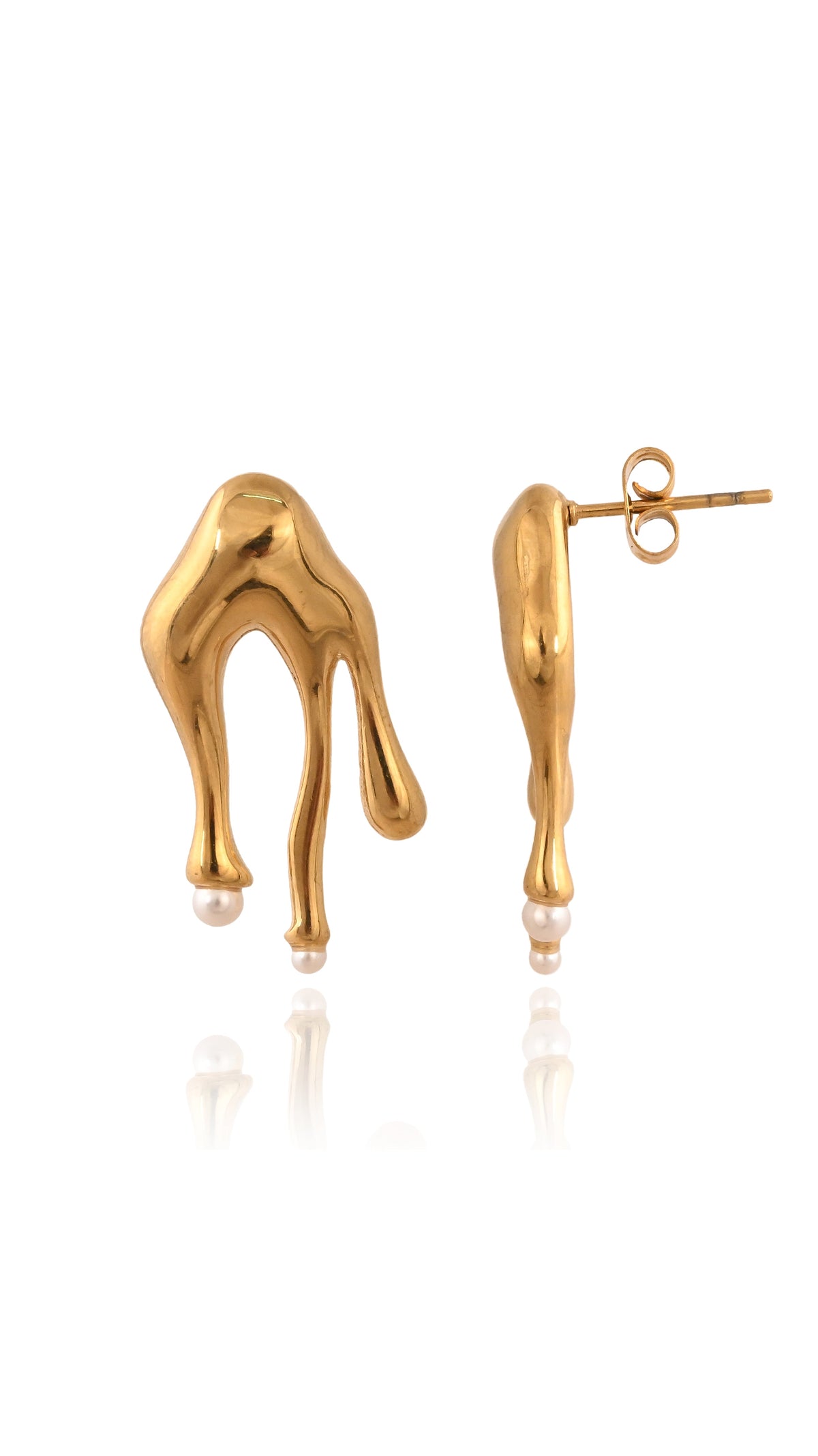 The Crawlers Studs don’t follow form. Part creature, part sculpture, these abstract gold earrings walk the line between organic chaos and high art. With their crawling silhouette and fluid, primal curves, they feel alive. Wildly modern, unapologetically strange, and completely magnetic.